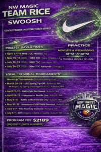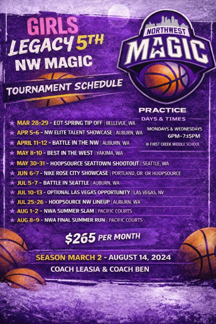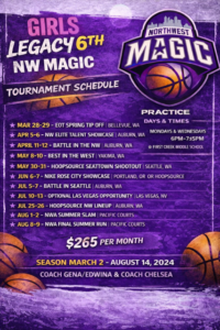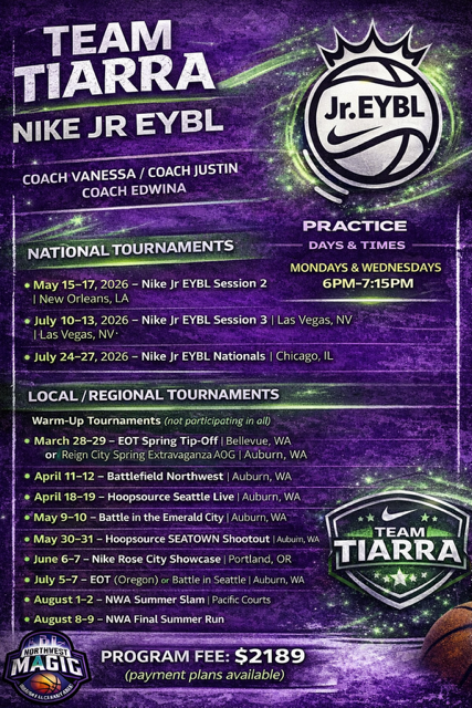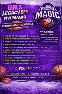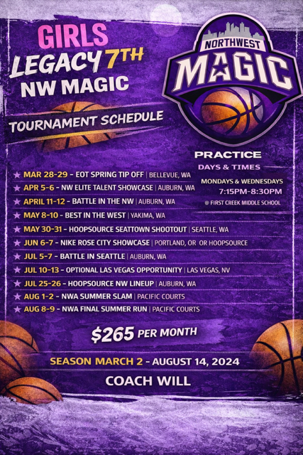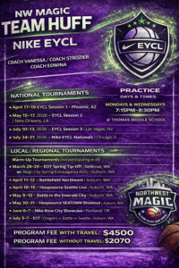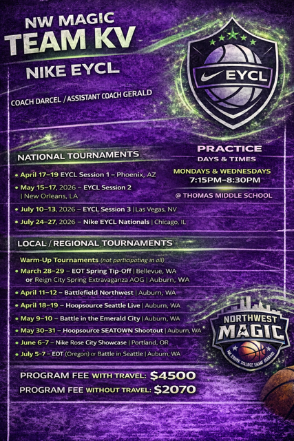 If you are interested in playing for Spring/Summer 2026 please contact Coach Vanessa @ 253-355-6497 or email coachvanessa@northwestmagic.org